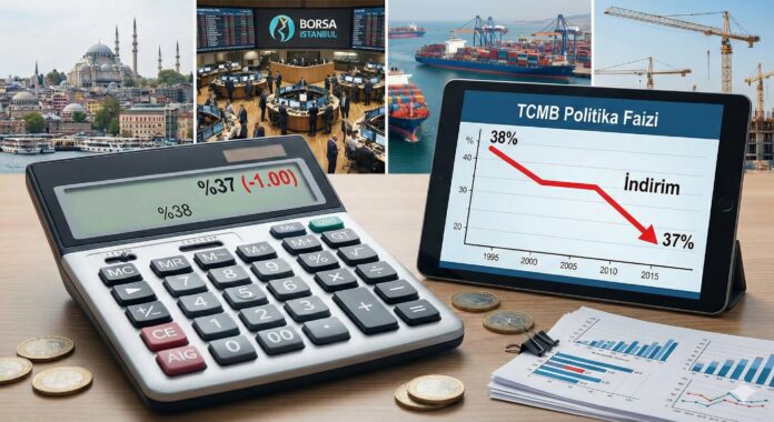 TCMB, 2026’nın ilk Para Politikası Kurulu toplantısında politika faizini bir hafta vadeli repo ihale oranını %38’den %37’ye indirerek 100 baz puan düşürdü; gecelik borç verme ve borçlanma faizlerinde de ayarlamalar yapıldı.